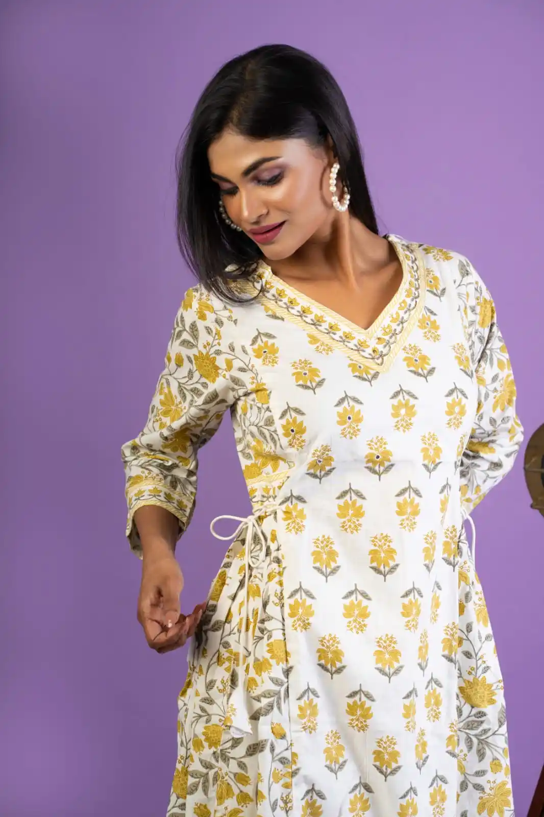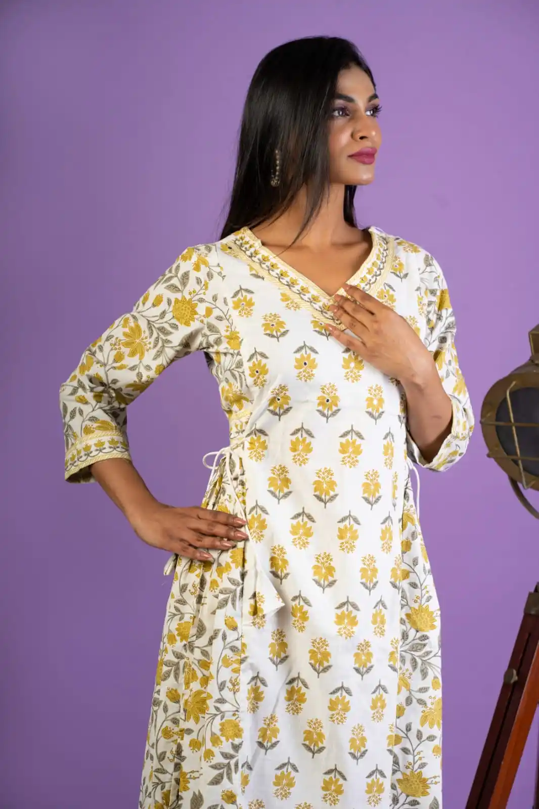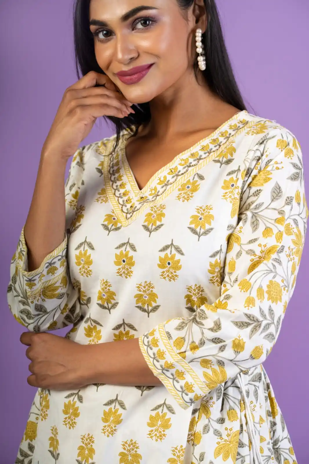 Women Kurta Set with Afghani Pant and Dupatta (Yellow)