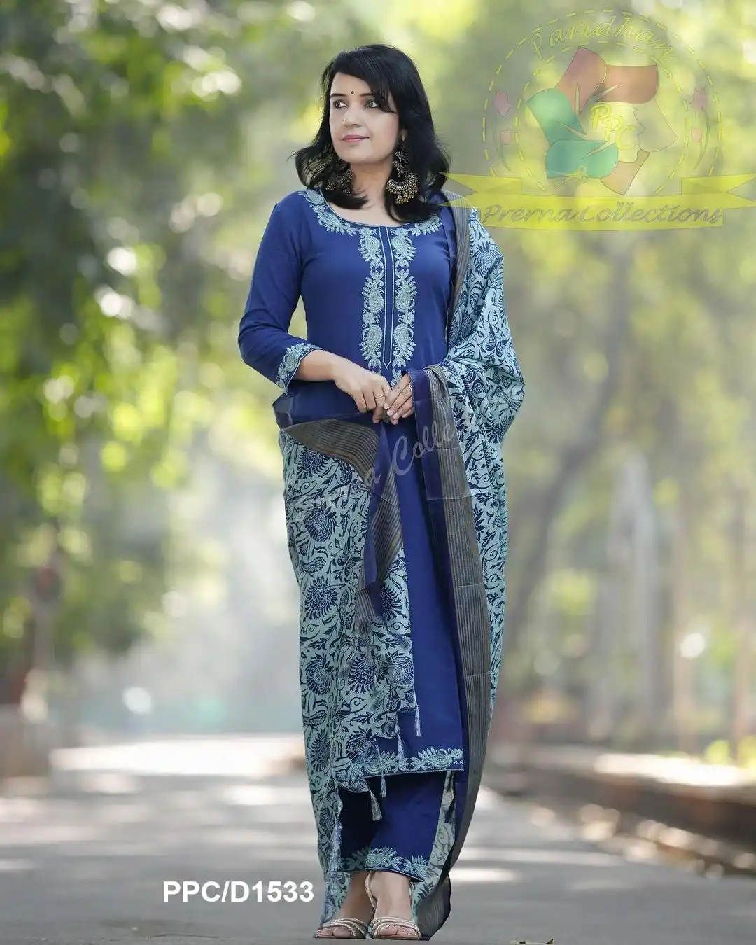 Blue Cotton Kurta set with Dupatta For Women