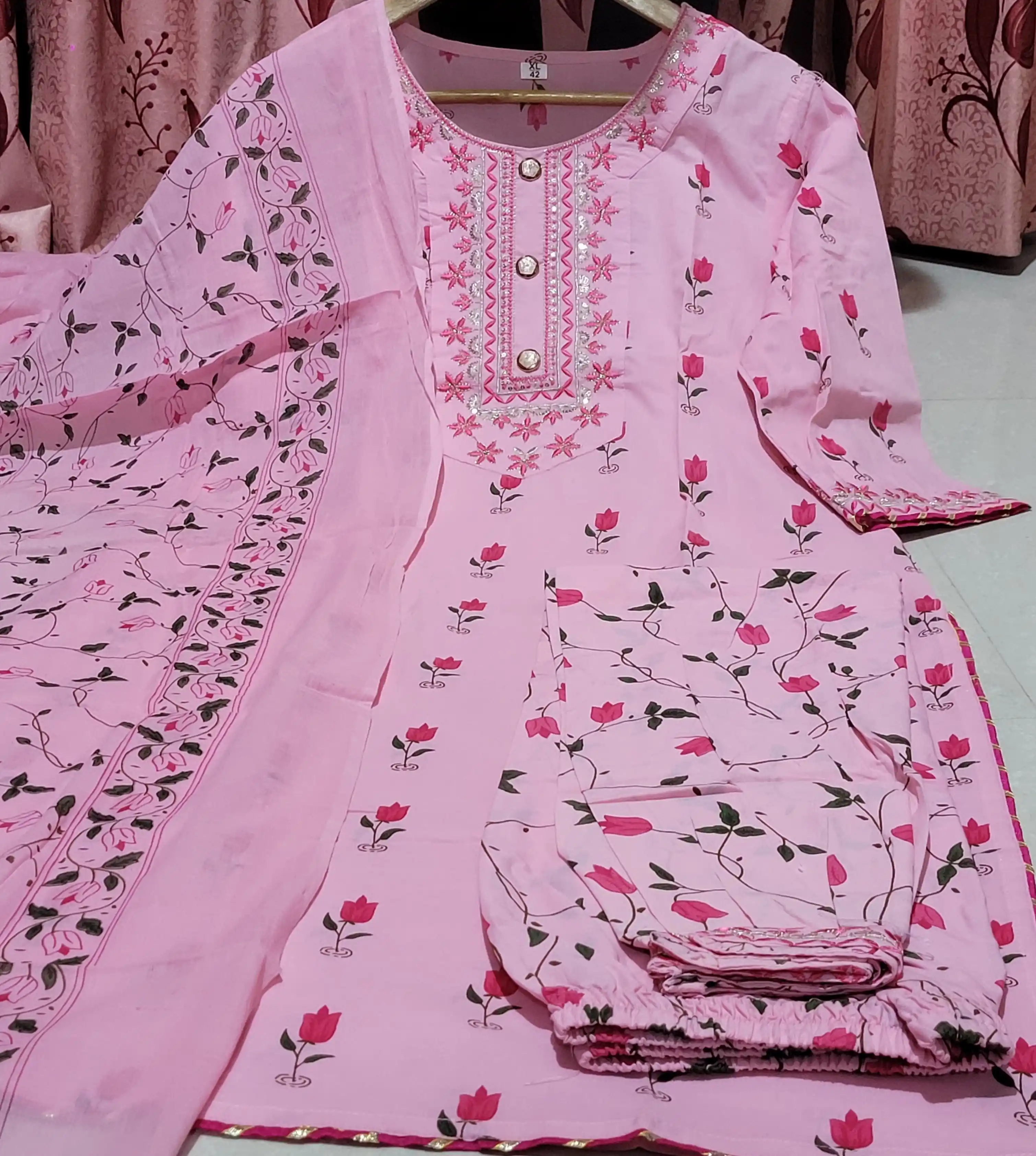 Cotton Floral Afghani Suit Set